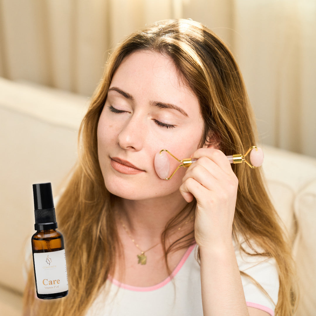 Gua Sha-settet med ansiktsrulle og Comforth Care Vitamin F Oil er en perfekt kombinasjon for deg som ønsker å skjemme bort huden med naturlig pleie og en avslappende ansiktsmassasje. Denne duoen, som også kan kjøpes som en samlet pakke, gir huden din et sunt boost og hjelper med å forbedre blodsirkulasjonen og redusere spenninger i ansiktet.