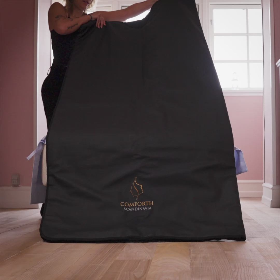 I saunateppet vårt brukes ekte karbonfibre til å generere infrarød stråling. Noen billigere versjoner bruker kobbertråder eller ståltråd, som er mindre trygge og er ikke i stand til å avgi langbølget, infrarødt lys. Dermed er disse saunateppene ikke infrarøde, og man bør holde seg borte fra dem.