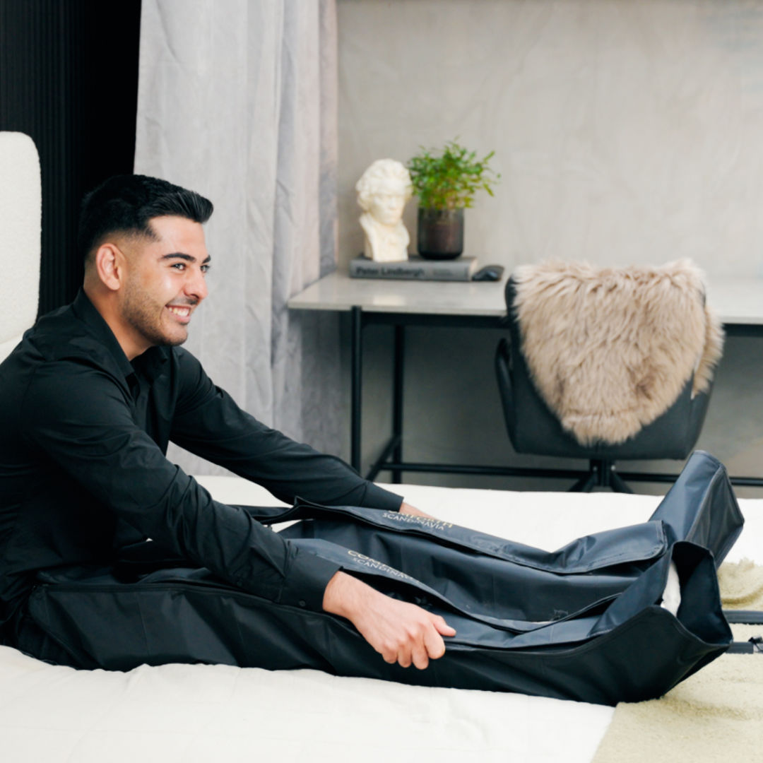 Med våre Recovery Boots kan du enkelt og smertefritt lindre ømme og hovne ben etter en lang dag eller en hard treningsøkt. Støvlene gir en skånsom, men effektiv behandling som reduserer betennelse og smerte ved å stimulere lymfedrenasje og forbedre blodsirkulasjonen. Resultatet er en merkbar letthet i bena, perfekt for deg som ikke lenger vil frykte “leg day”